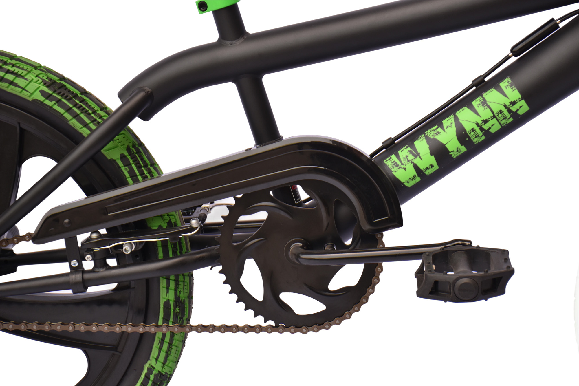 WYNN BMX Freestyle 20 Zoll XX1.2 schwarz-grün Rahmenhöhe 28 cm Muddy-Freestyle-Reifen Mag-Wheels V-Brake