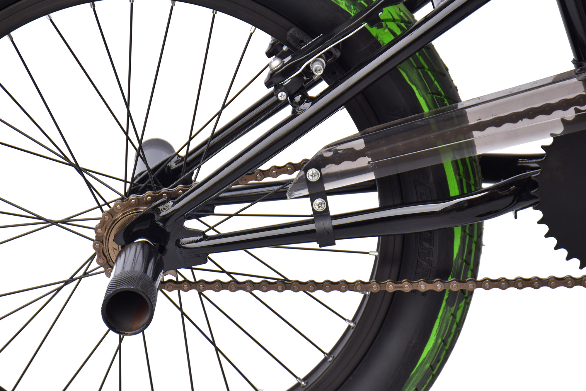 Das WYNN BMX Freestyle 20 Zoll FATT schwarz kommt ohne Gangschaltung aus, was es besonders für Freestyle-Fahrer attraktiv macht. Mit einem einzigen Gang und einem 44-Zähne-Kettenblatt ermöglicht es schnelle Reaktionen und einfache Handhabung bei Tricks und Sprüngen.