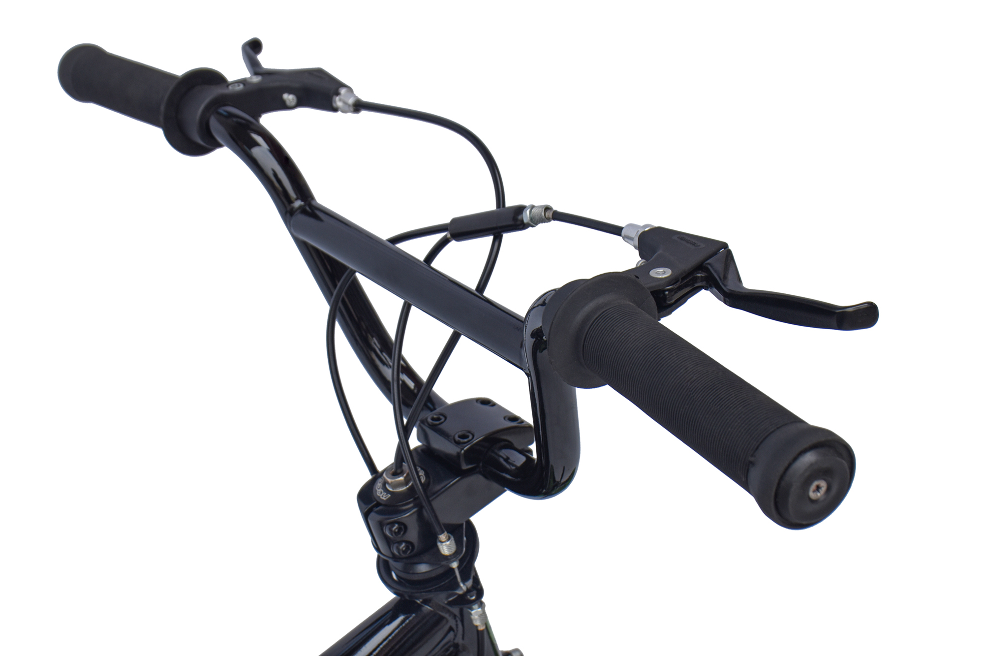 Für die nötige Sicherheit sorgt das V-Brake-System des WYNN BMX Freestyle 20 Zoll FATT schwarz. Mit Aluminium/Komposit-Bremshebeln an beiden Rädern bietet es zuverlässige Bremskraft und präzise Kontrolle, ideal für schnelle Stops und kontrollierte Landungen nach Sprüngen.