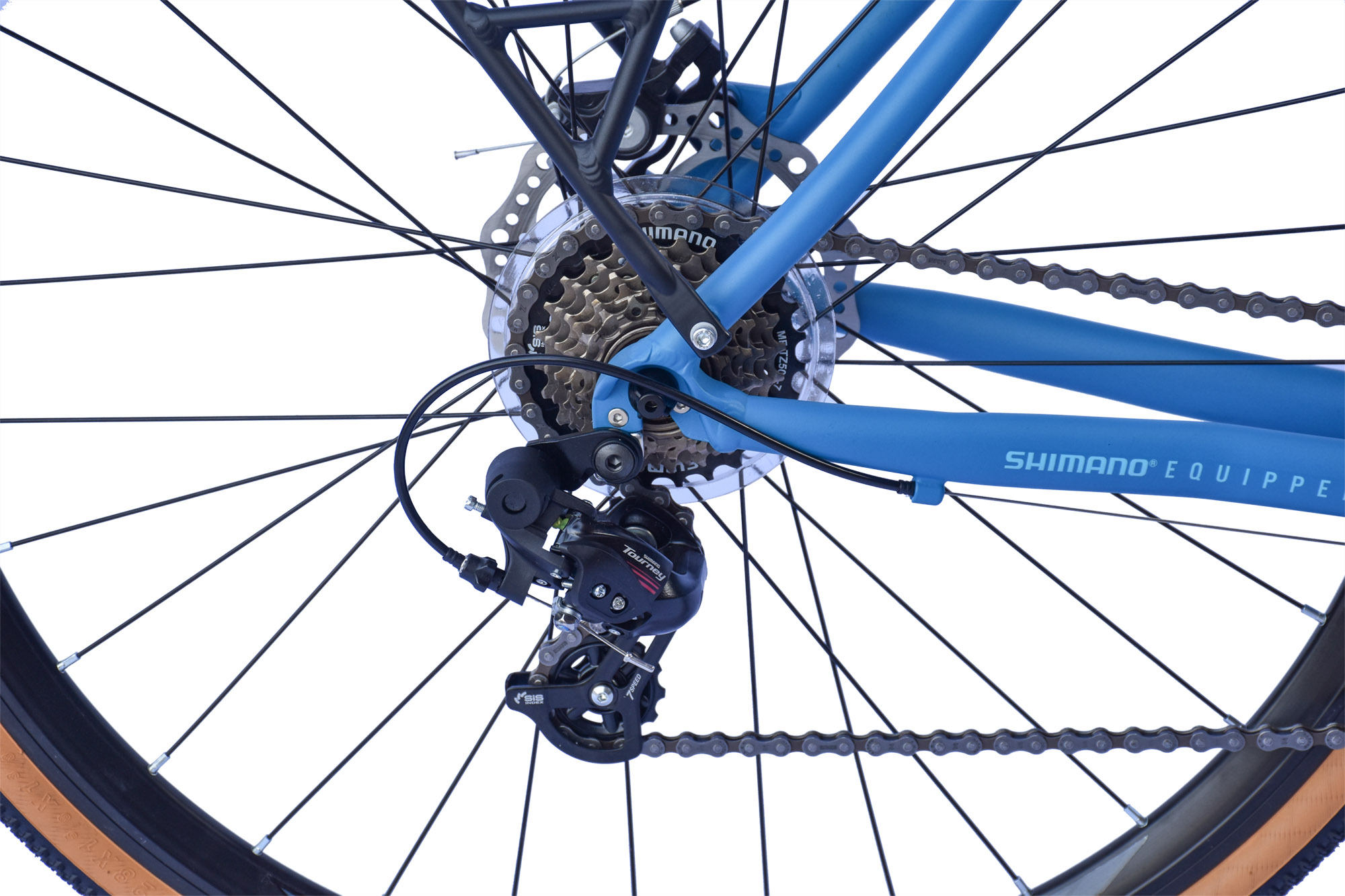 Die 14-Gang Shimano Tourney Schaltung sorgt für präzise und zuverlässige Gangwechsel, ideal für wechselnde Geländeprofile. Kombiniert mit den SHIMANO DUAL CONTROL LEVER Schalt-/Bremshebeln ermöglicht sie eine einfache und komfortable Bedienung.