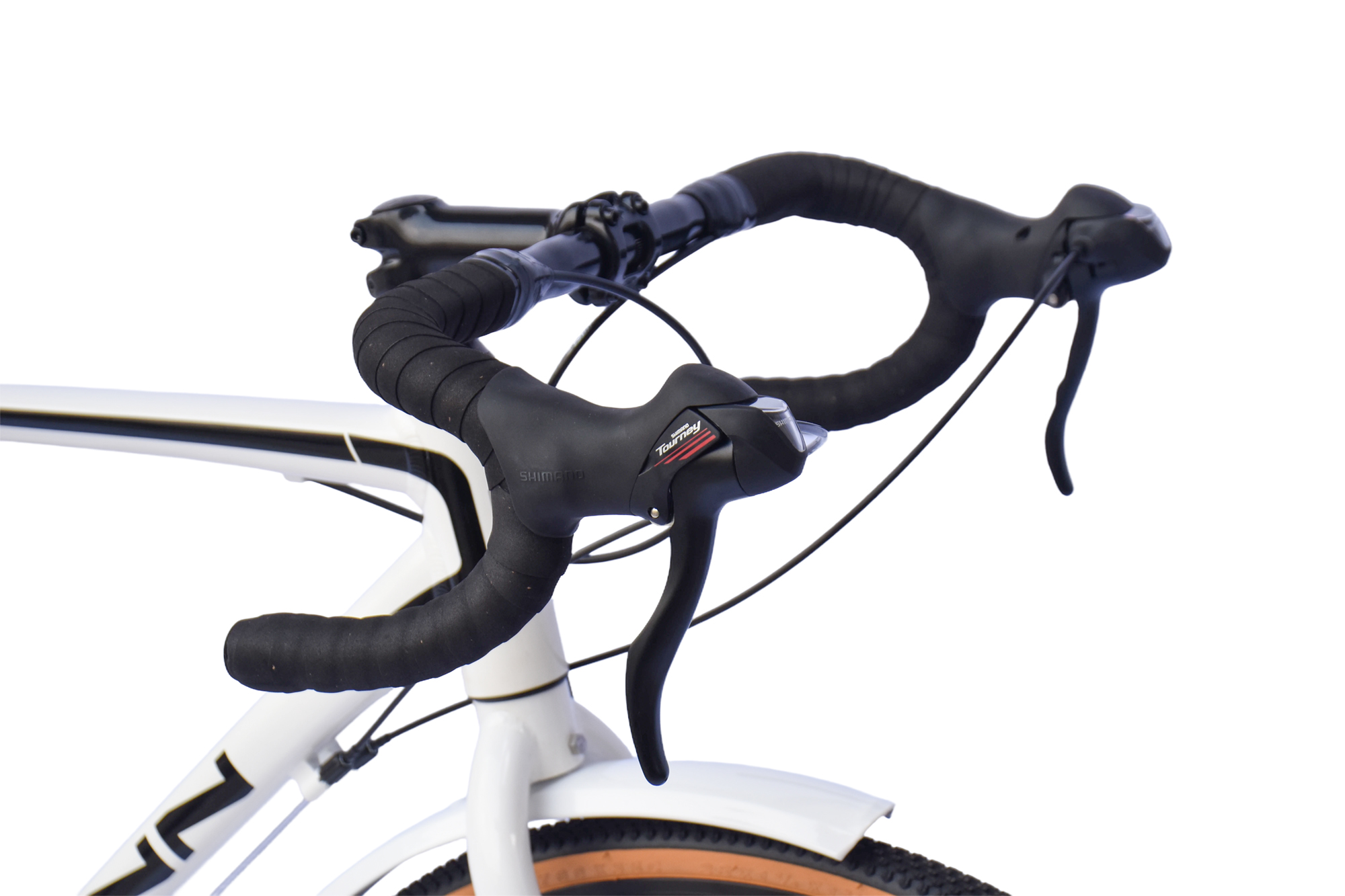 Ausgestattet mit einem stabilen Aluminiumrahmen, einer 14-Gang Shimano Tourney Schaltung und mechanischen Scheibenbremsen von Tektro bietet das WYNN GRL 1.1 Gravelbike eine zuverlässige und langlebige Ausstattung. Die WTB Riddler Reifen bieten nicht nur guten Grip, sondern auch eine ästhetische Einheit mit dem Rahmen.