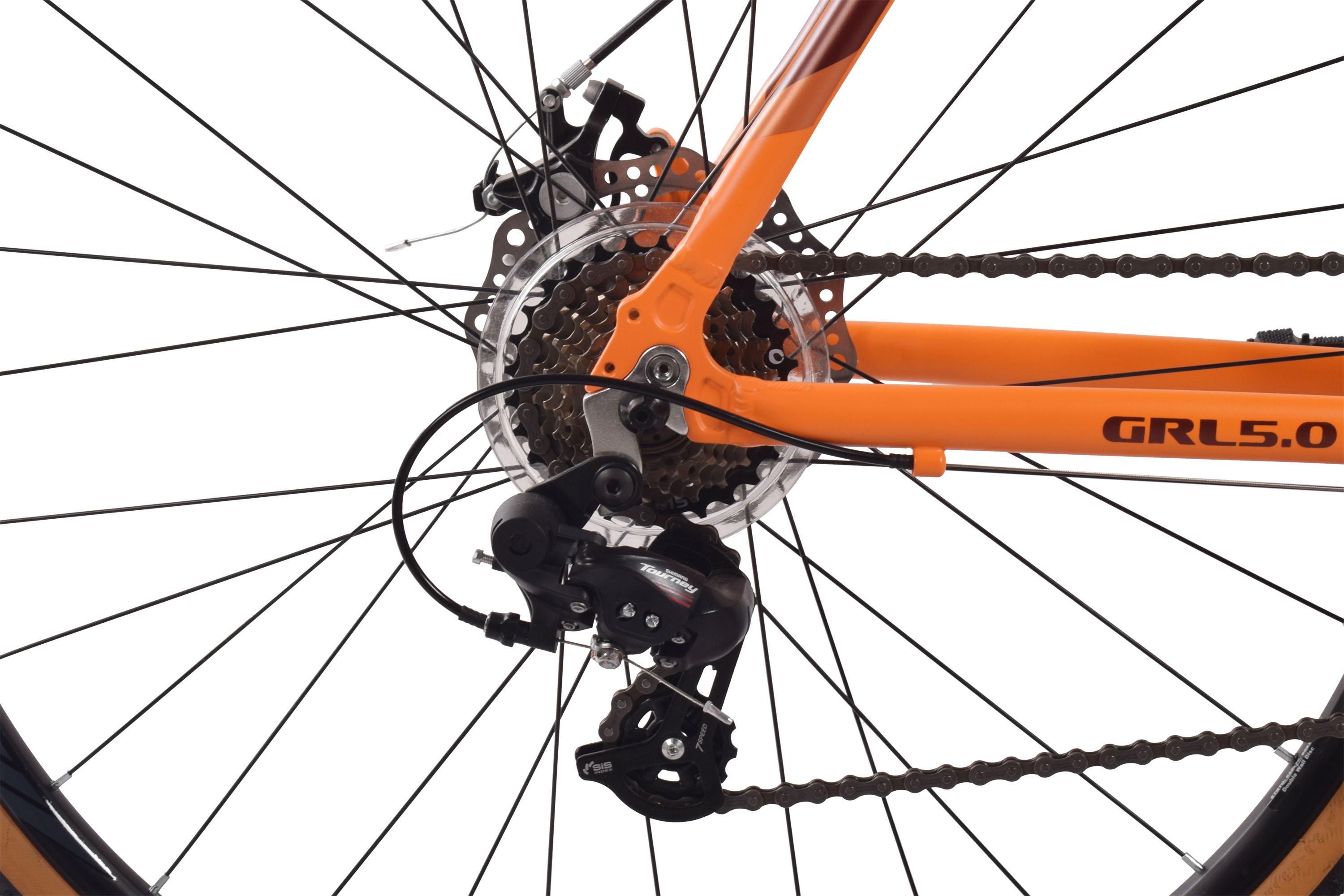Das WYNN Gravelbike 28 Zoll GRL 5.0 in orange kombiniert einen leichten Aluminiumrahmen mit einer komfortablen Geometrie, die sowohl Pendler als auch Freizeitradler anspricht. Mit 14 Gängen und mechanischen Scheibenbremsen bietet es optimale Performance auf Asphalt, Schotter und leichten Trails.