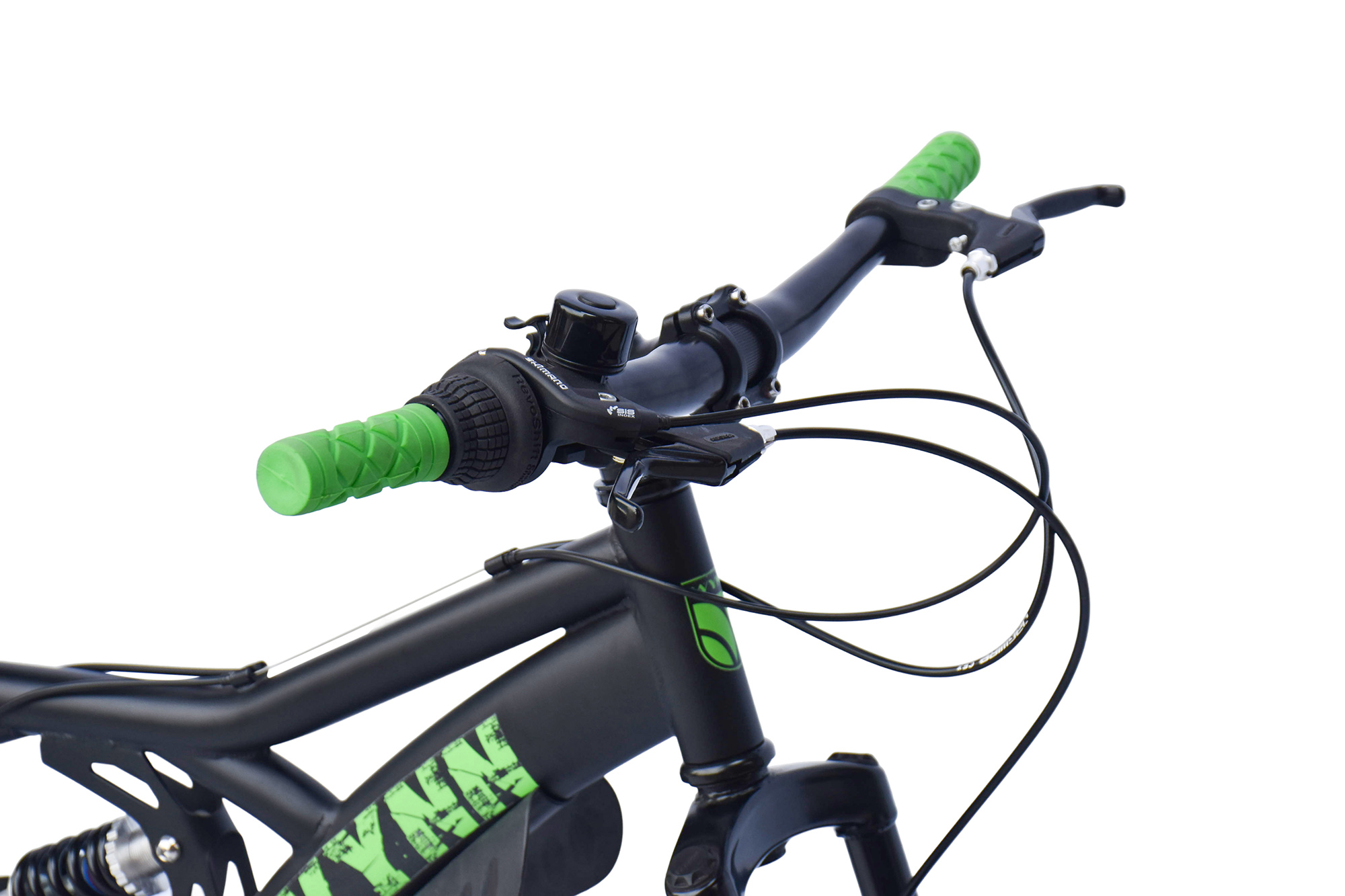 Dieses 20-Zoll-Mountainbike mit stabilem Stahlrahmen und sportlicher Geometrie ist der perfekte Begleiter für Schule, Freizeit und Wochenendausflüge. Ob auf Asphalt, Waldwegen oder Schotter – es überzeugt mit Langlebigkeit, Fahrkomfort und einem stylischen Look in Matt-Schwarz mit grünen Akzenten.
